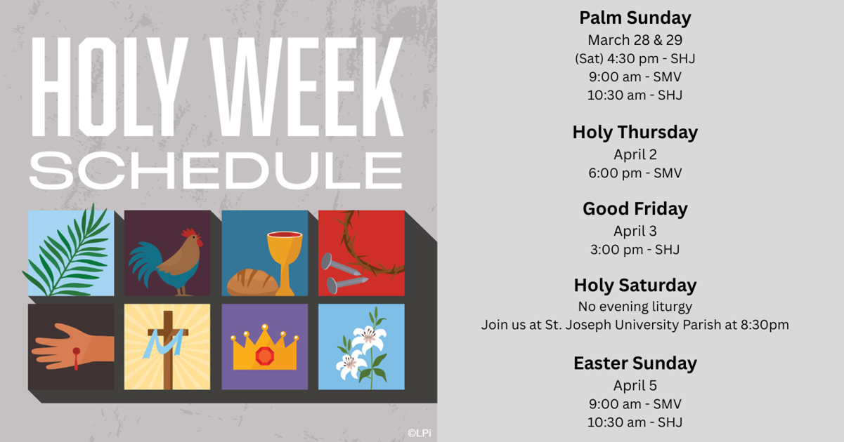 Saturdays at 4:30 pm or Sundays at 10:30 am.